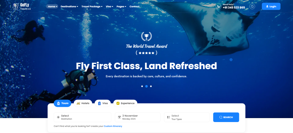 Whether you’re promoting destinations or managing reservations, GoFly delivers the flexibility, performance, and elegance you need to run a successful travel and tour website.