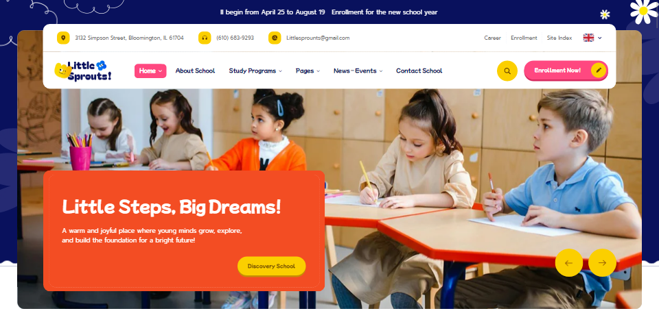 Little Sprouts is a cheerful and engaging WordPress theme tailored for kindergartens, preschools, daycare centers, and early learning institutions. Its colorful, playful layouts and intuitive design create a warm and welcoming online presence that appeals to both parents and children.