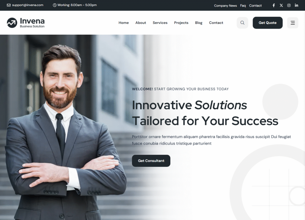 Invena is a powerful and professional WordPress theme crafted for corporate, consulting, finance, insurance, HR, marketing, and digital agency websites. Built with Elementor and Slider Revolution, it offers effortless drag-and-drop customization with real-time preview. Packed with 34+ homepage demos and 60+ inner pages, Invena provides endless layout possibilities tailored to your business needs.The theme is fully responsive, RTL-ready, and WooCommerce-compatible, making it easy to sell services or products online. With advanced theme options, global typography & color controls, and SEO-friendly code, Invena ensures your business website looks polished and ranks well. Developed by ReacThemes, an Elite Author with over a decade of experience, Invena combines premium features with pixel-perfect design to help you convert visitors into clients with ease.